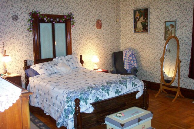Our room - note glassed doorway above headboard |