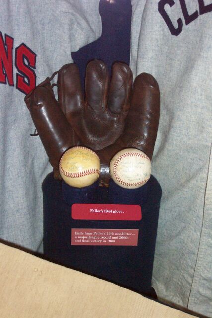 Bob Feller's 1944 glove and balls from 12th one hitter and final win. |